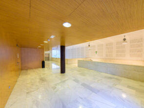 Sala cultural con capacidad para 40 personas, equipada con mesa presidencial, sistema de microfonía y altavoces, así como proyector y pantalla para presentaciones. El espacio se complementa con información biográfica del luthier Antonio de Torres, ofreciendo un entorno ideal para charlas, conferencias y actividades culturales.