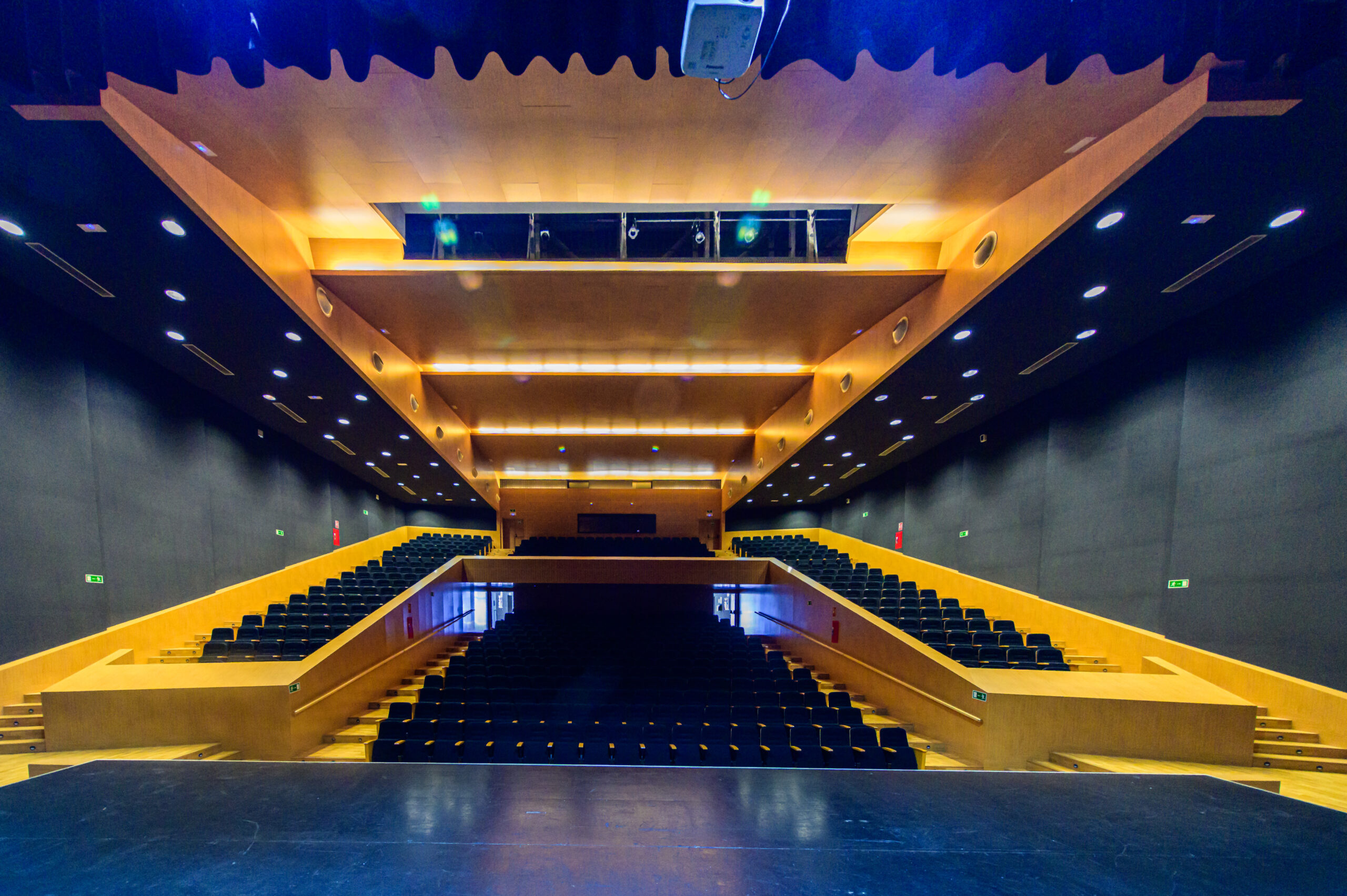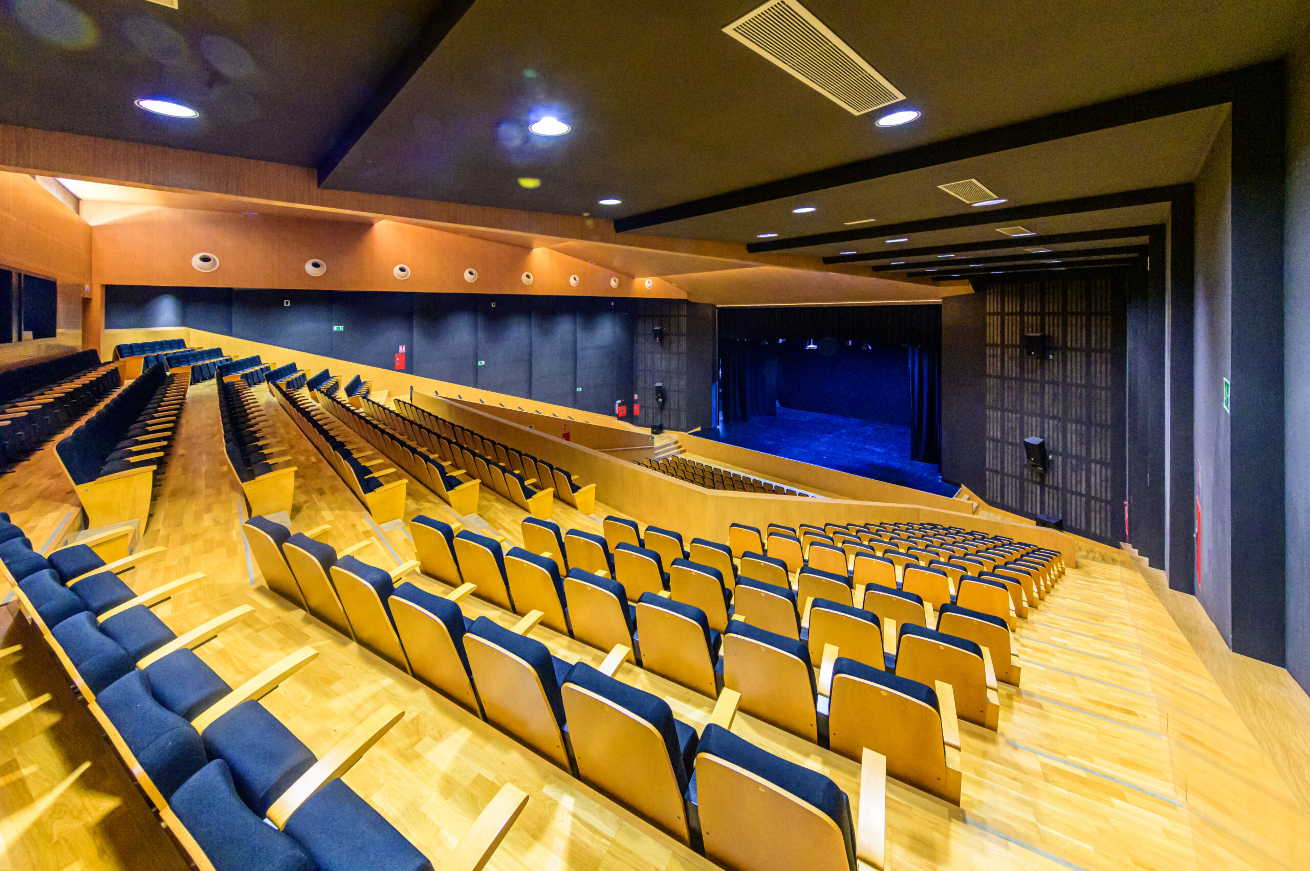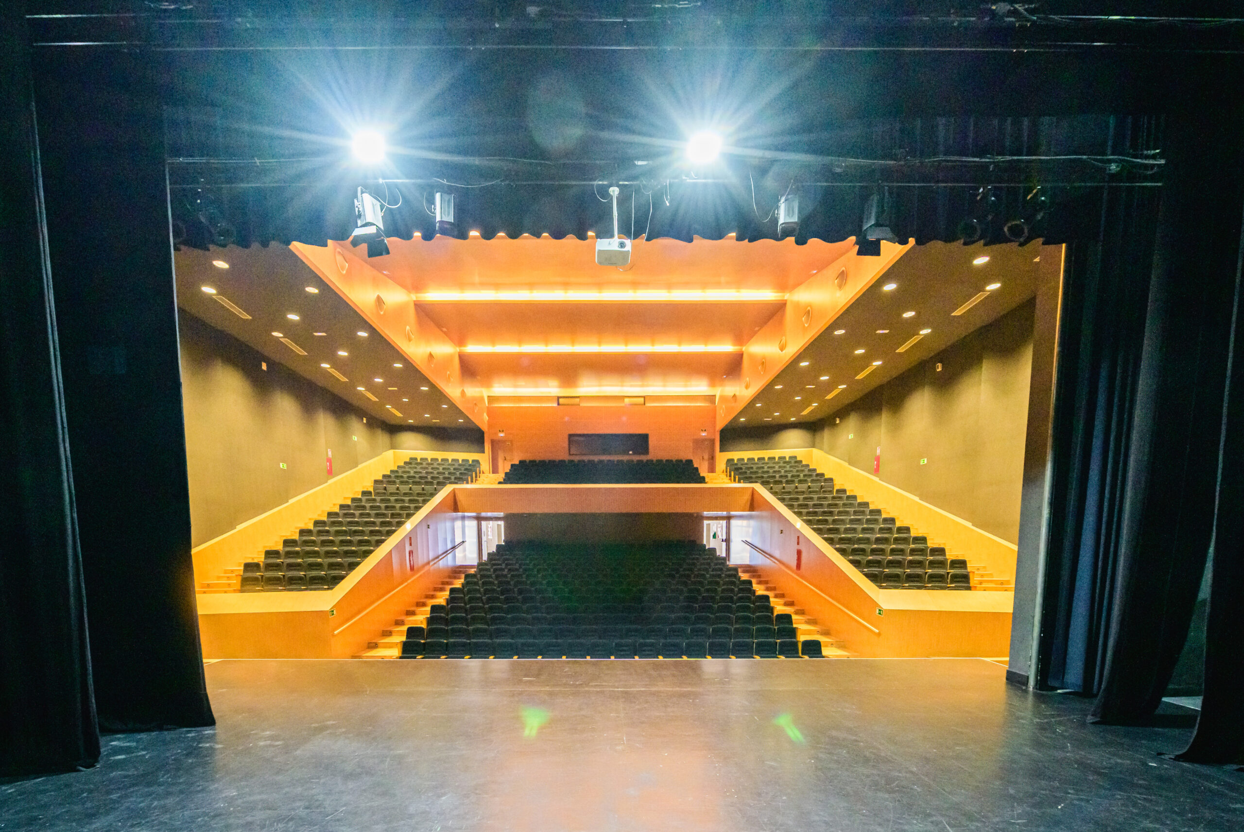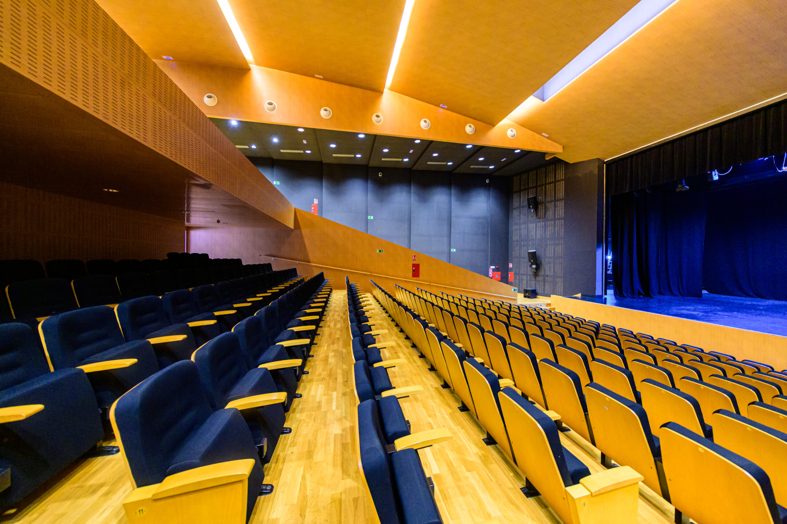 Donde se encuentran el Patio de Butacas y las Plateas Par, Impar y Central. Con una capacidad para 600 personas, esta sala destaca por su excelente acústica y por ofrecer una visibilidad óptima del escenario desde cualquier punto, siendo idónea para cualquier tipo de espectáculo cultural, presentación o conferencia. También existe una zona reservada para personas con movilidad reducida
