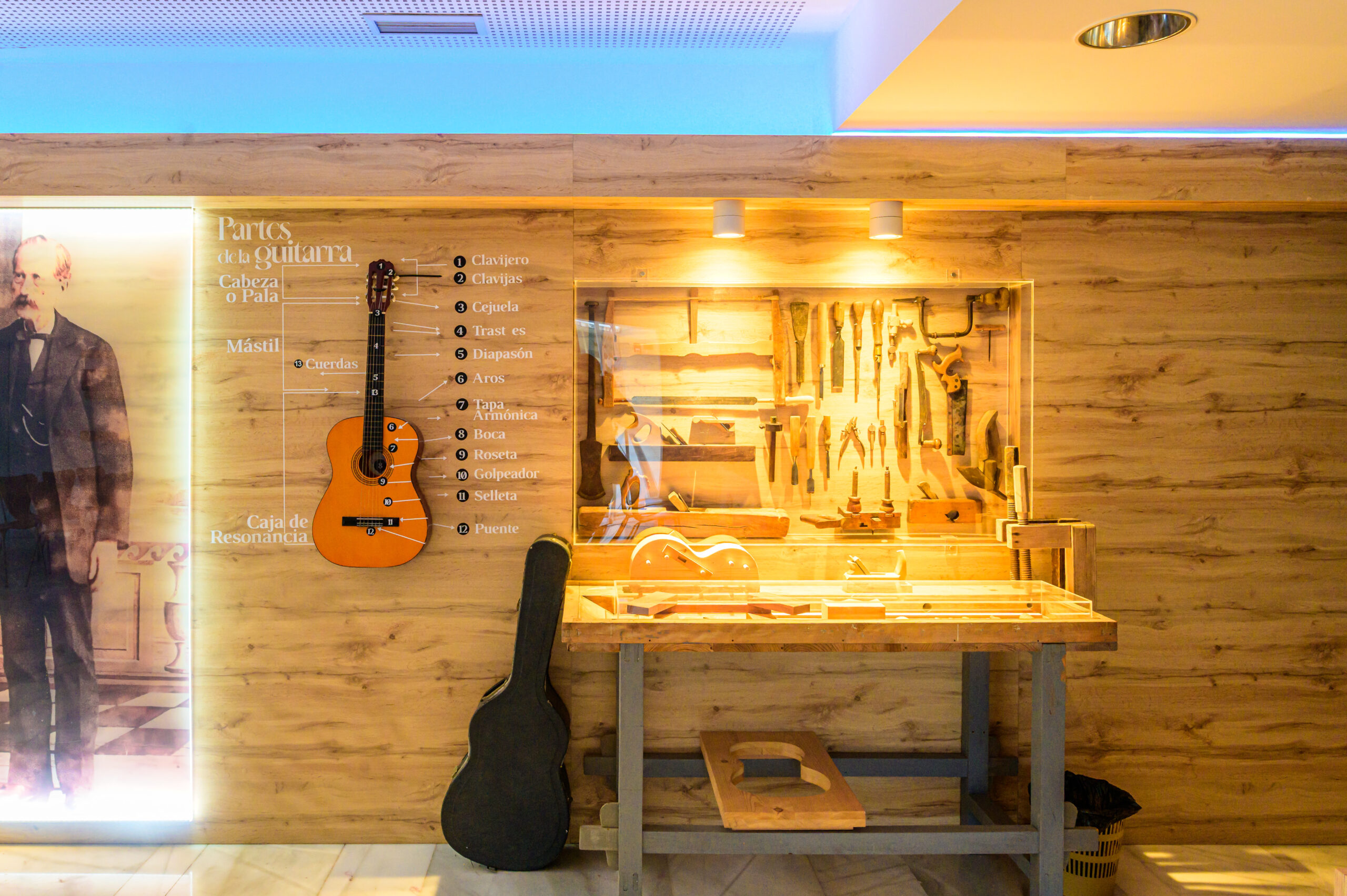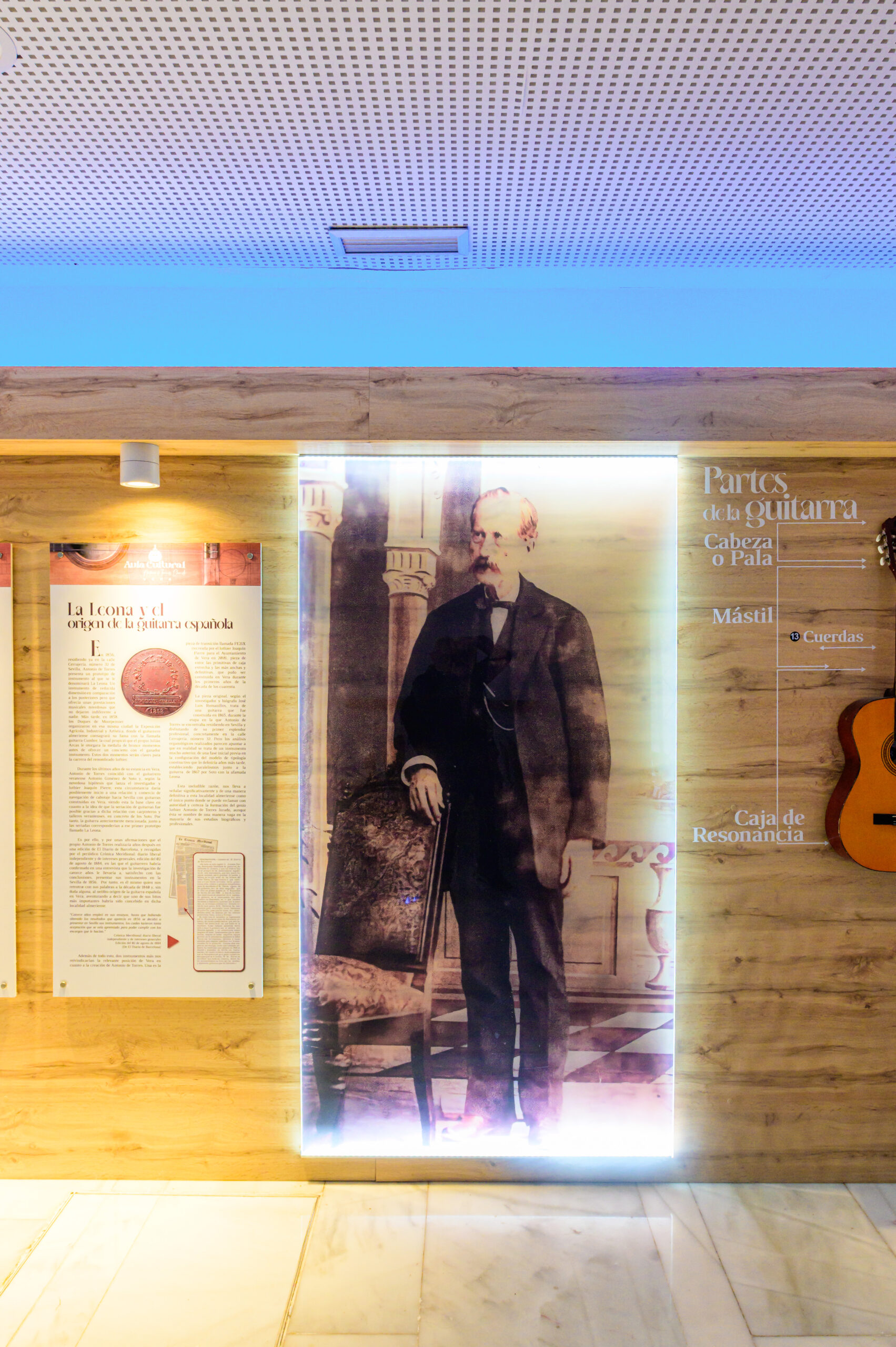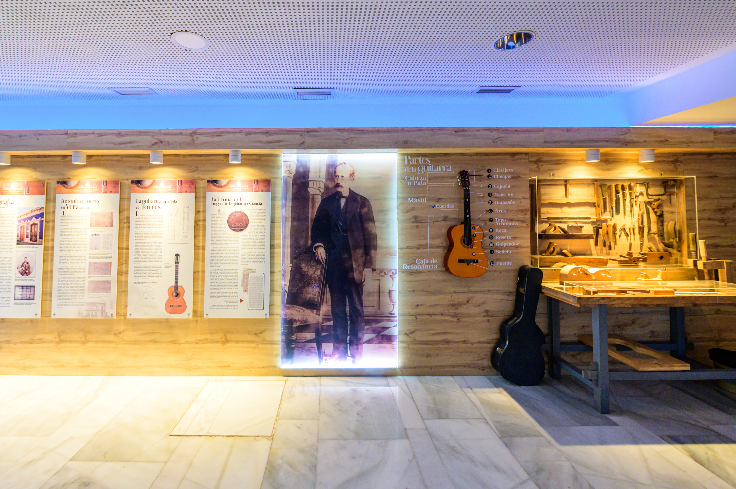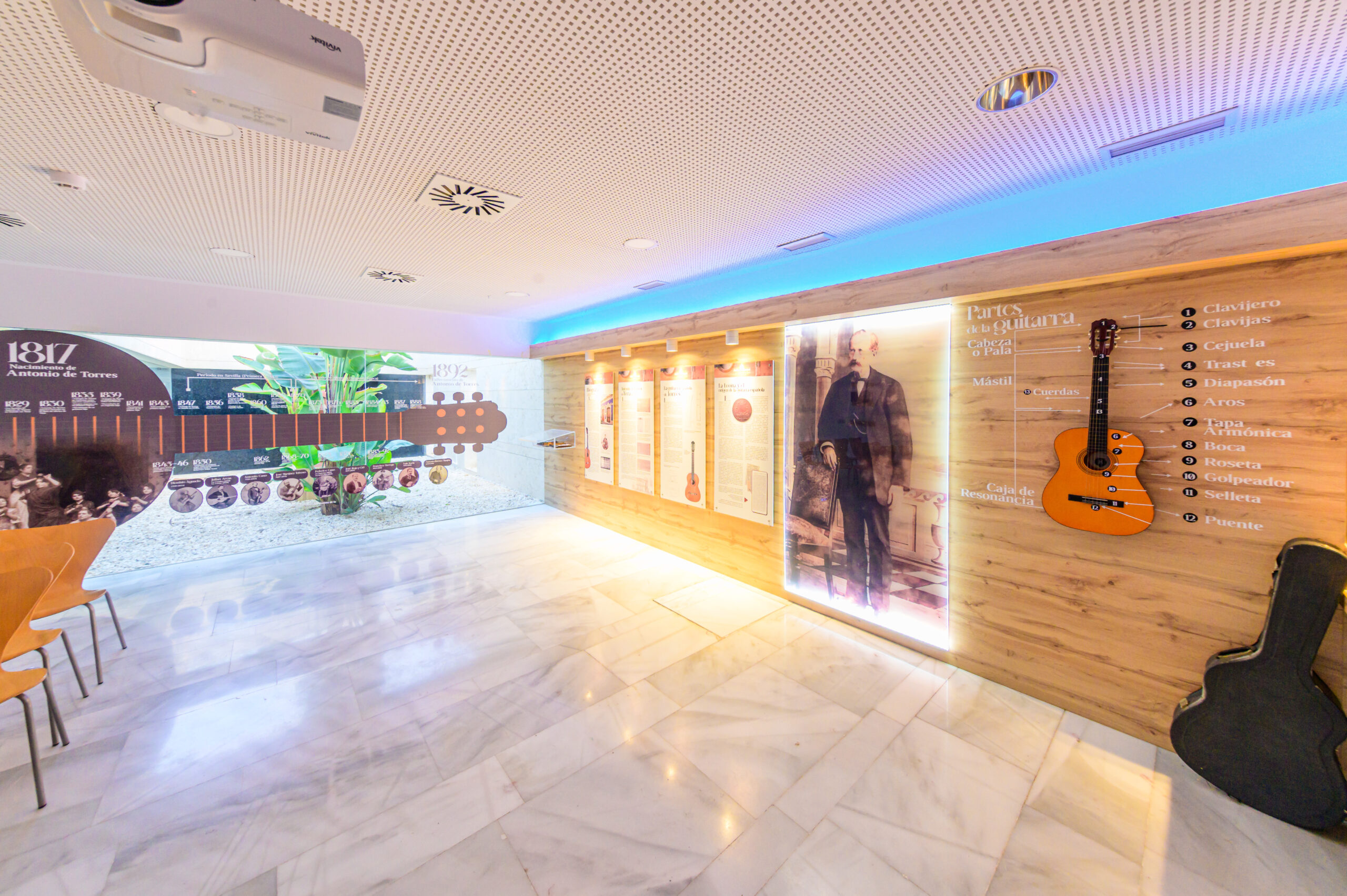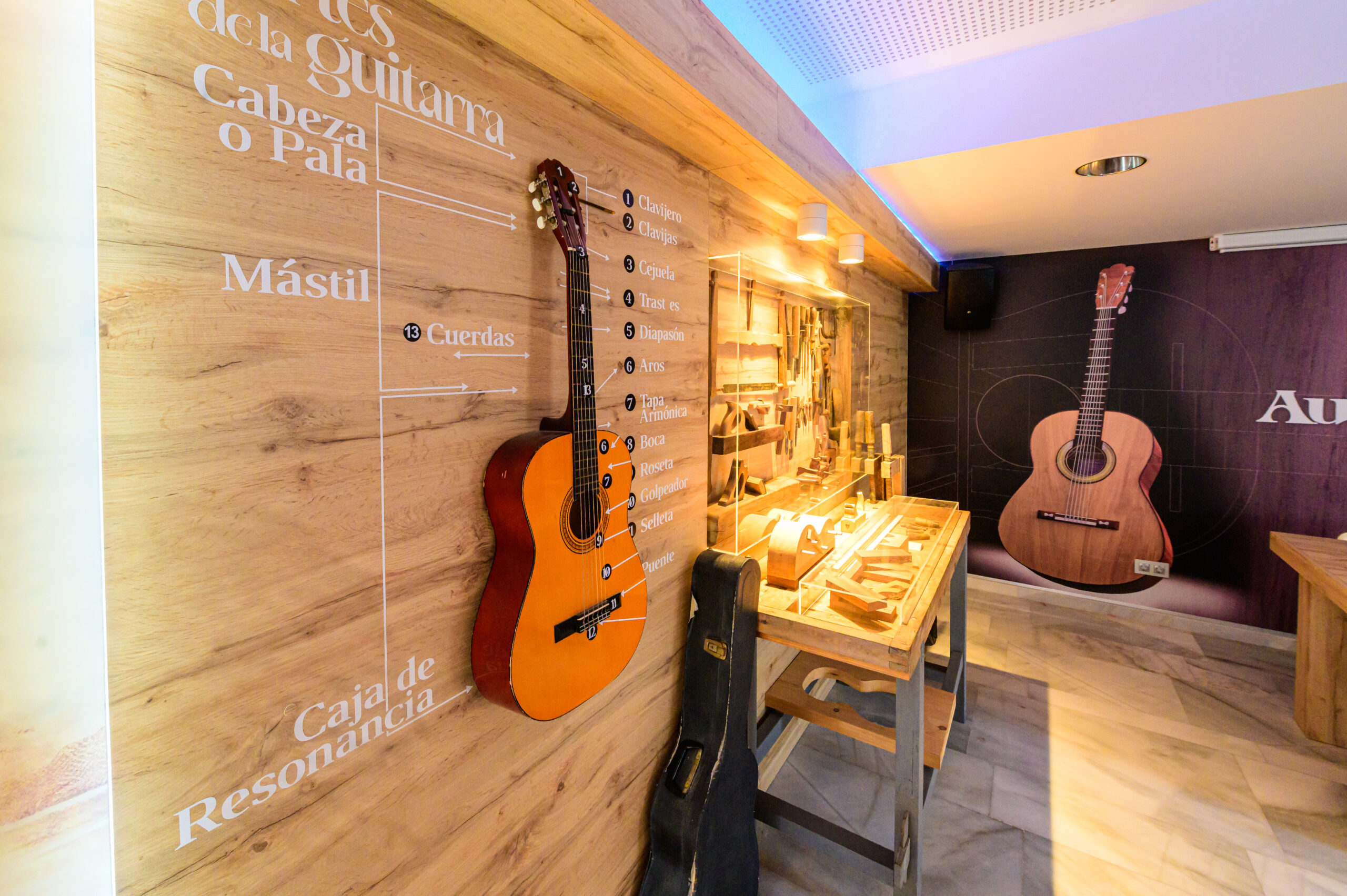 El espacio audivisual cuanta con una réplica de la guitarra FE21X de Antonio de Torres y que cuenta con una pantalla donde se proyecta un documental sobre su vida y legado, permitiendo al visitante conocer en profundidad la figura y la obra del célebre luthier.